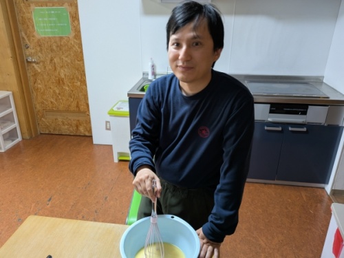 卵を割るのに苦戦したり、材料を混ぜるのが楽しくて
