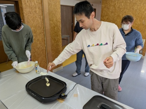 生地を作るところから焼くところまでを利用者さんと職員で一緒に行いました。