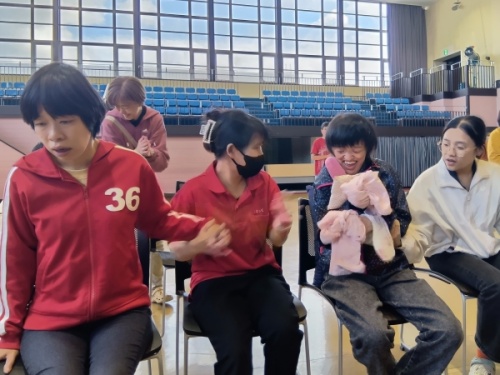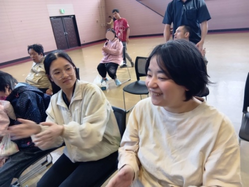 椅子に座ったまま身体を揺らしたり、手拍子をしたり、音楽に合わせて