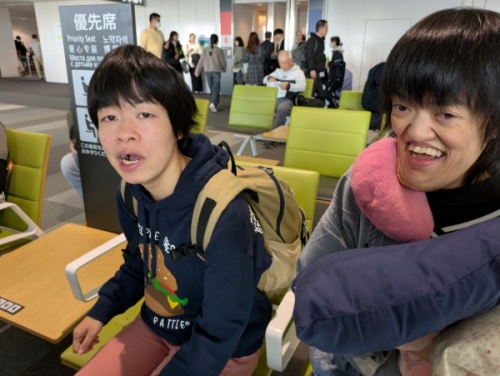新千歳空港に到着し、空港内で朝食をとって搭乗口へ。皆さんの表情からすでにワクワクした気持ちが伝わってきます。