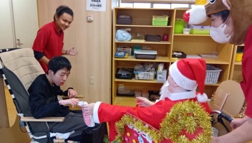 回りながら利用者様お一人おひとりにプレゼントをお渡ししました。