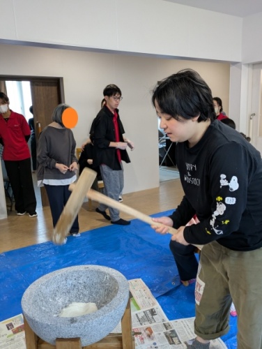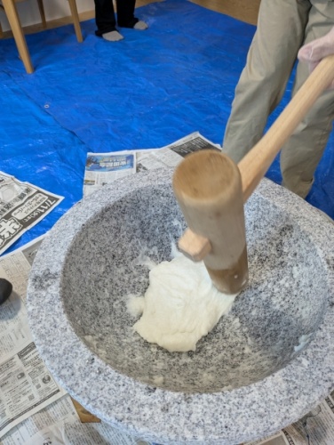 「よいしょ!」の掛け声と共に張り切って餅をつきました。